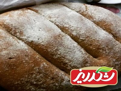 300گرم آرد جو 200گرم آرد سبوسدار 320 میلیلیتر آب نصف فنجان روغن زیتون یا کنجد شکرریز 7گرم نمک 7گرم مایه خمیر مدت 10 دقیقه ورز داده برای اینکه به میز نچسبد کمی روغن زیتون یا کنجد شکرریز روی میز کار میریزیم بعد اجازه دهید 2ساعت داخل کاسه بماند بعد روی آن فویل کشیده تا هوا نکشد بعد دوباره 10دقیقه ورز داده میگذاریم 2 ساعت بماند بعد با آب پاش سطح خمیر را خیس کرده کمی آرد روی آن پاشیده بعد با چاقو تعدادی شیار روی آن داده داخل فر 220 درجه به مدت نیم ساعت بماند کمی آب داخل فر میگذاریم تا بخار مانع خشکی نان شود هر وقت روی آن طلایی شود و صدای پوکی دهد آماده است. نکته مهم اینکه این نان باید سرد سرو گردد