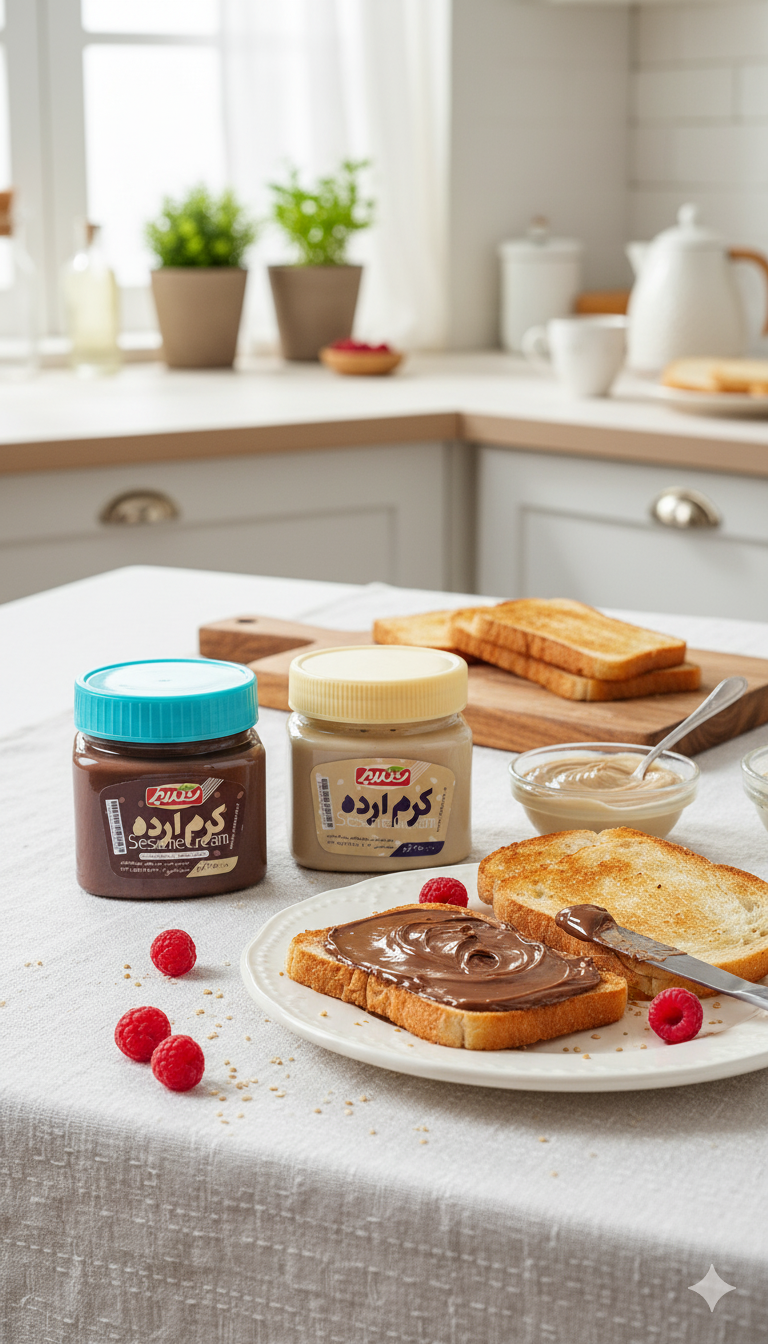 محصول تولیدی ترکیبی از ارده و شکر می باشد و یک غذای بسیار عالی و مقوی برای صبحانه و میان وعده های غذایی محسوب می گردد.